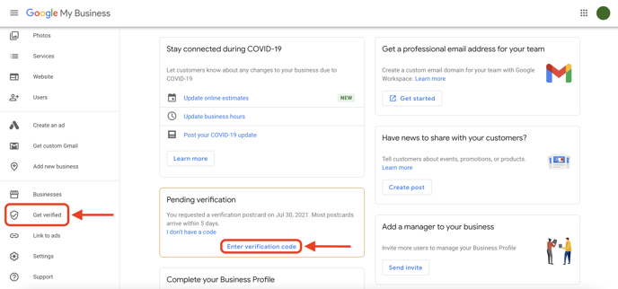 For more detailed information about Google My Business profile verification, check out Google's support article.